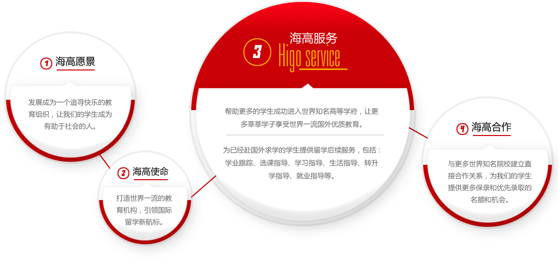 海高团队的价值:对学生长期的规划和指导,引导学生深化自我认识,在这个过程中,也更注重学生个人的成长和体验。我们的目标是帮助每一位学生在其所能达到的能力范围内尽可能的取得最适合、最理想的学校。